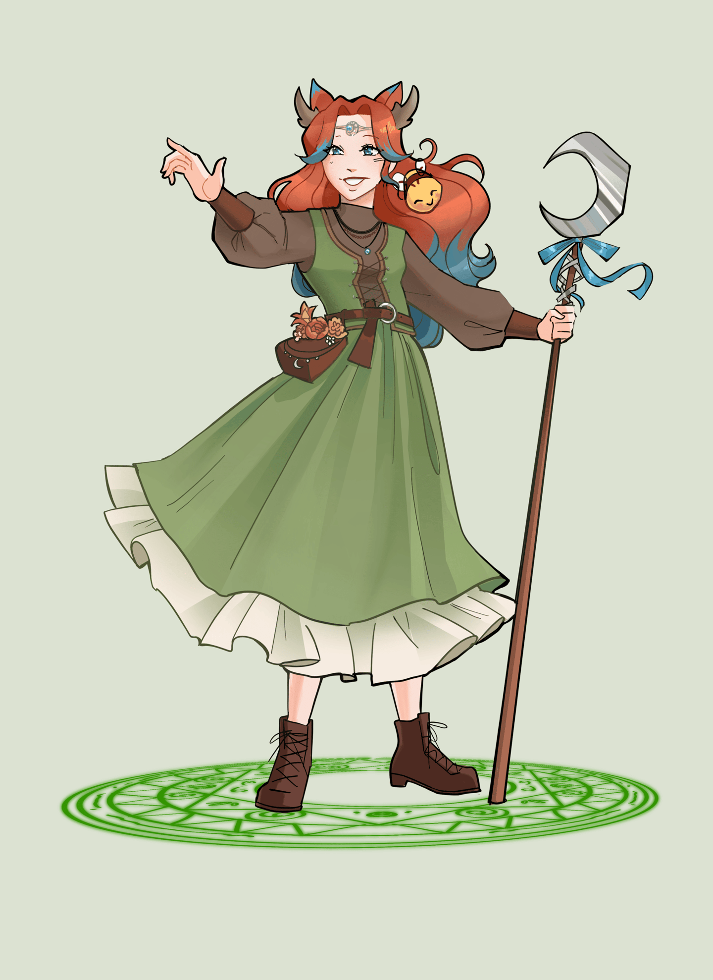 Luna is a Fae'Elin from the Ebre Valley in the imperial province of Eilidhar, and she is a fierce protector of the forest, and devout druid of the lilac. She protects and cares for all animals including her trusty bee familiar, and her Sadwren Steed. She is at her best when the weather turns cold and the world feels like it's a comfort, taking the time to explore new places and relax under the early moonrises. She has a strong affinity for the moons, and is at her strongest when the three moons are all out for the world to stare in admiration. Staves are her weapon of choice, but she does know how to conjure a scythe, sickle or bow when the situation requires. Her unyielding protection of nature has given her many enemies amongst the landowners & noblemen alike, but to her protecting the beauty and sanctity of a world is more important than someone else's gold. The opportunities afforded by her boldness have been the marks of legends.