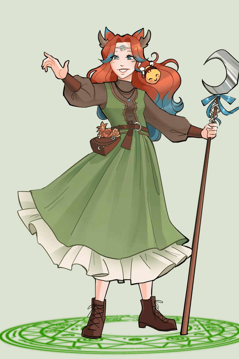 Luna is a Fae'Elin from the Ebre Valley in the imperial province of Eilidhar, and she is a fierce protector of the forest, and devout druid of the lilac. She protects and cares for all animals including her trusty bee familiar, and her Sadwren Steed. She is at her best when the weather turns cold and the world feels like it's a comfort, taking the time to explore new places and relax under the early moonrises. She has a strong affinity for the moons, and is at her strongest when the three moons are all out for the world to stare in admiration. Staves are her weapon of choice, but she does know how to conjure a scythe, sickle or bow when the situation requires. Her unyielding protection of nature has given her many enemies amongst the landowners & noblemen alike, but to her protecting the beauty and sanctity of a world is more important than someone else's gold. The opportunities afforded by her boldness have been the marks of legends.
